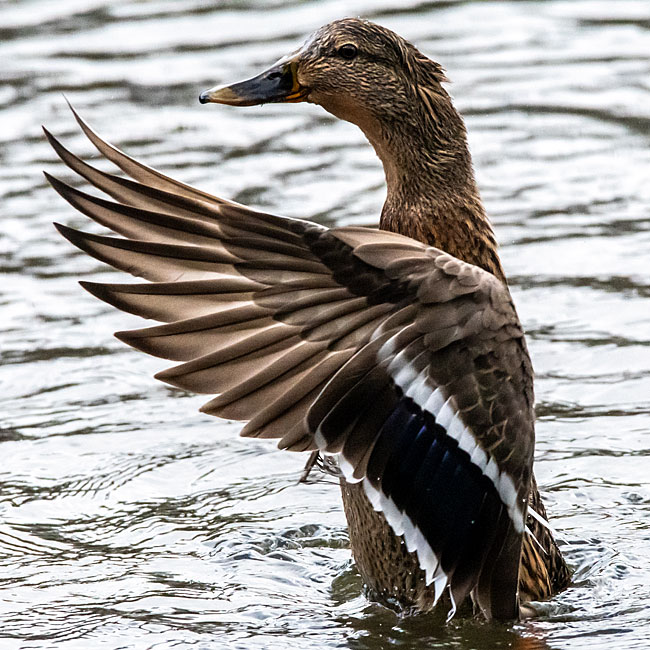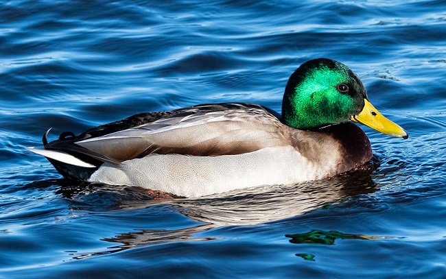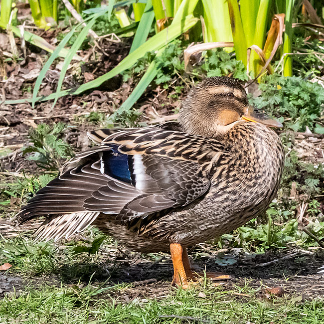 Both male and female mallards have distinct iridescent purple blue