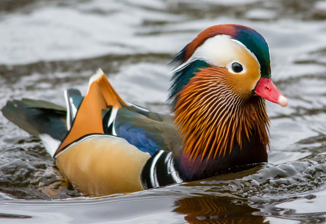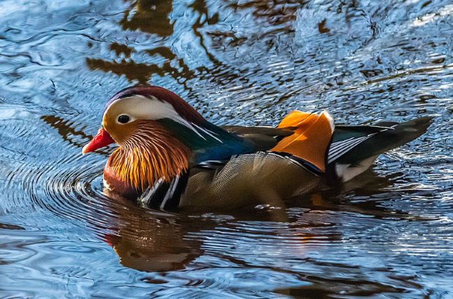 and the flanks ruddy, with two orange "sails" at the back. The female