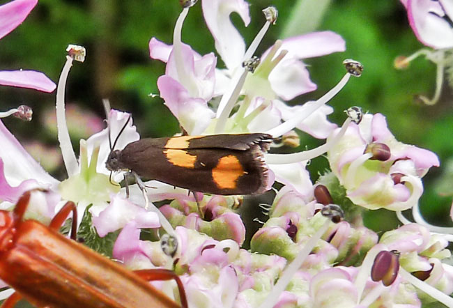 The larvae spin seeds of Hogweed together and feed on the seeds inside