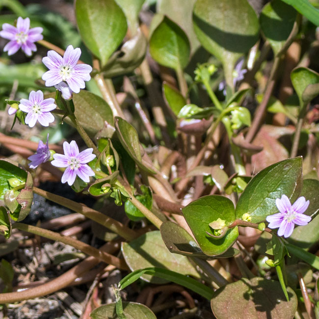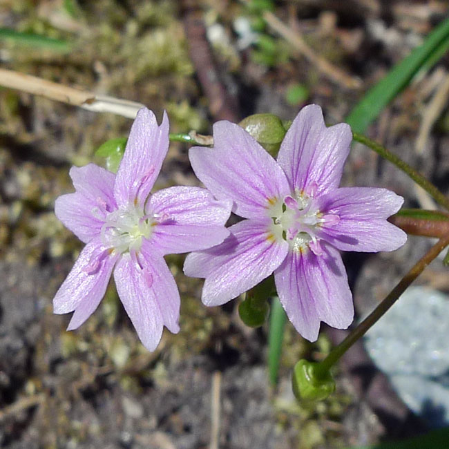 February - August. 8-20 mm diameter, with five white, candy-striped, or pink petals.