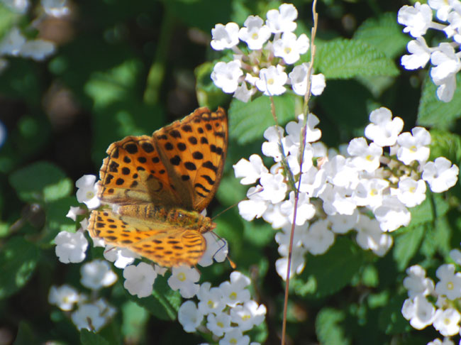 A variety of flowers, Thistles being a particular favourite.