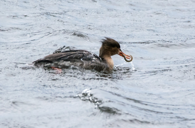 Dives for fish and invertebrates.