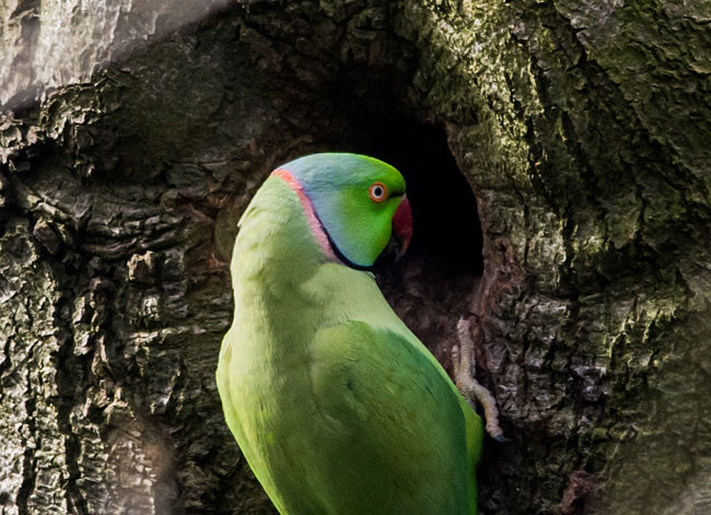 pale to dark grey neck rings. Both sexes have a distinctive green