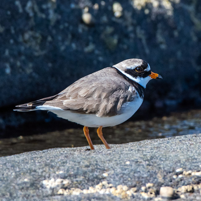 and black bill. The legs are orange and only the outer two