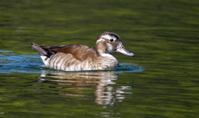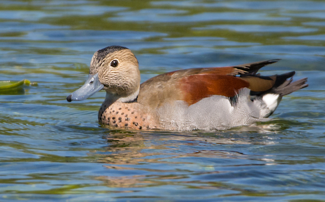 The drake has a rich chestnut back, pale grey flanks and a