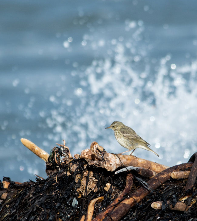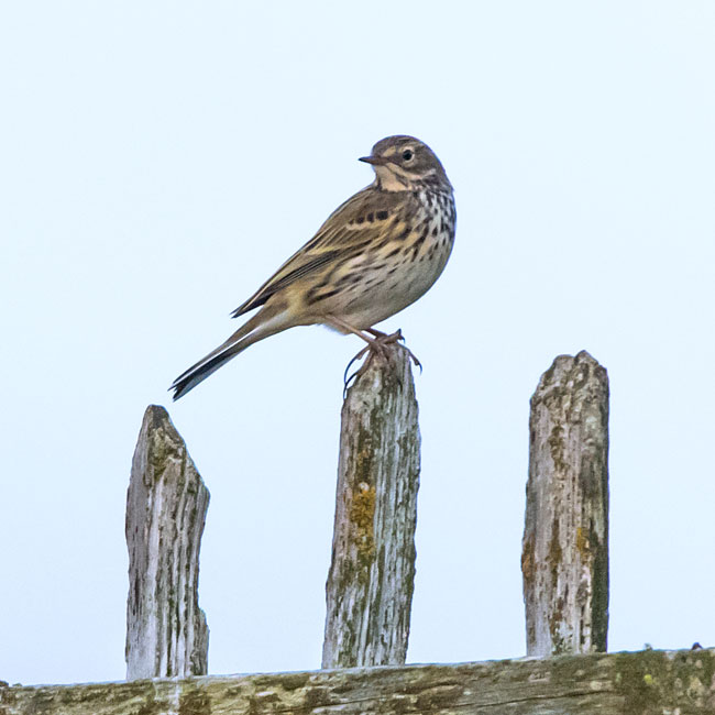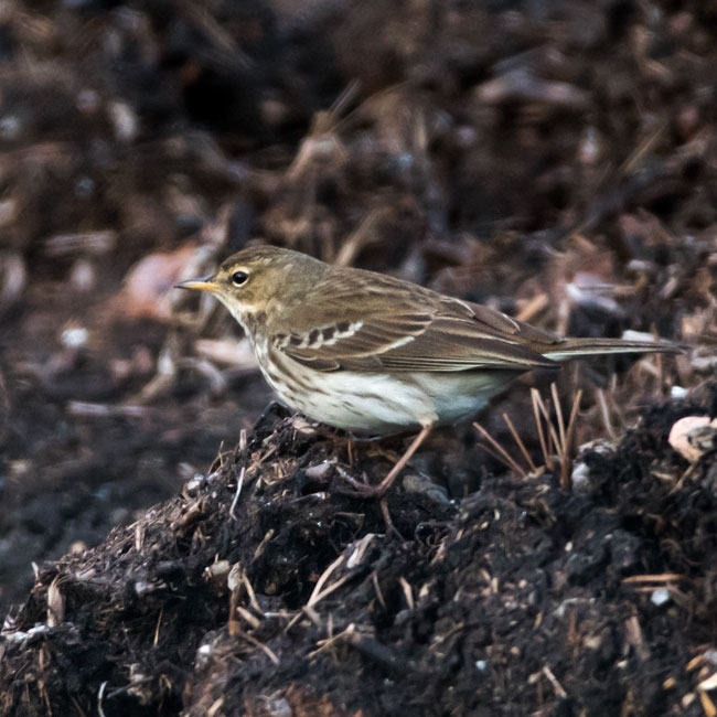 Mainly brown above and dark streaked buff below. It has dark legs,