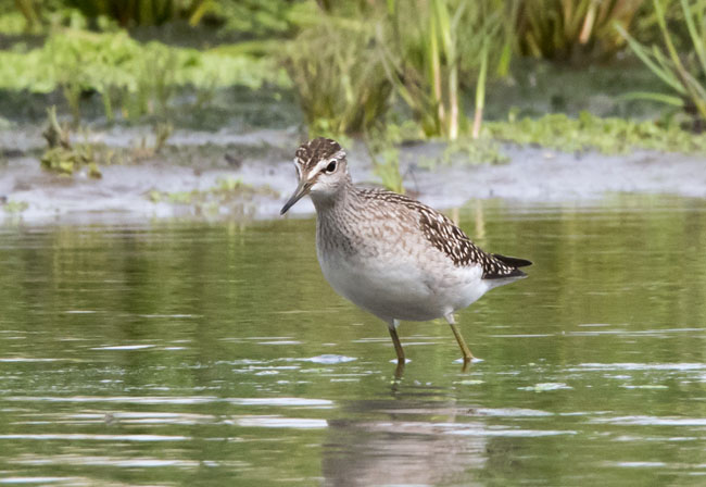 A short fine bill, brown back and yellowish legs,